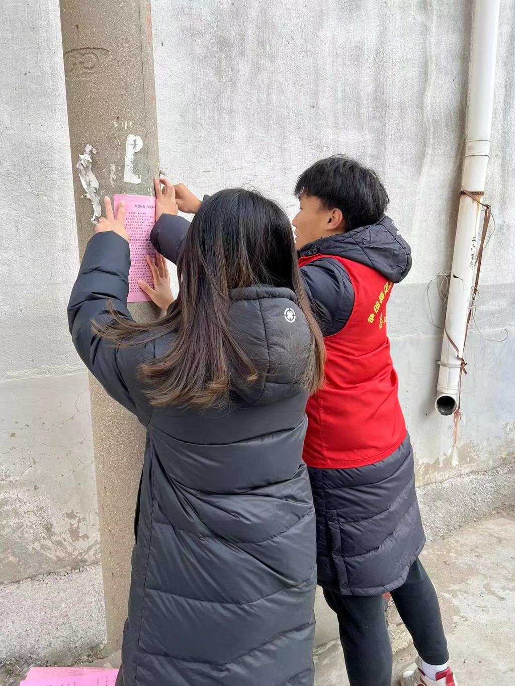 学生志愿者们说明了服务工作的具体安排和情况,志愿者们行走于奎文社区的大街小巷中,向当地的居民介绍了预防一氧化碳中毒的重要性以及预防措施,维护自身与家人的安全,并在居民墙上粘贴预防一氧化碳中毒的公告。