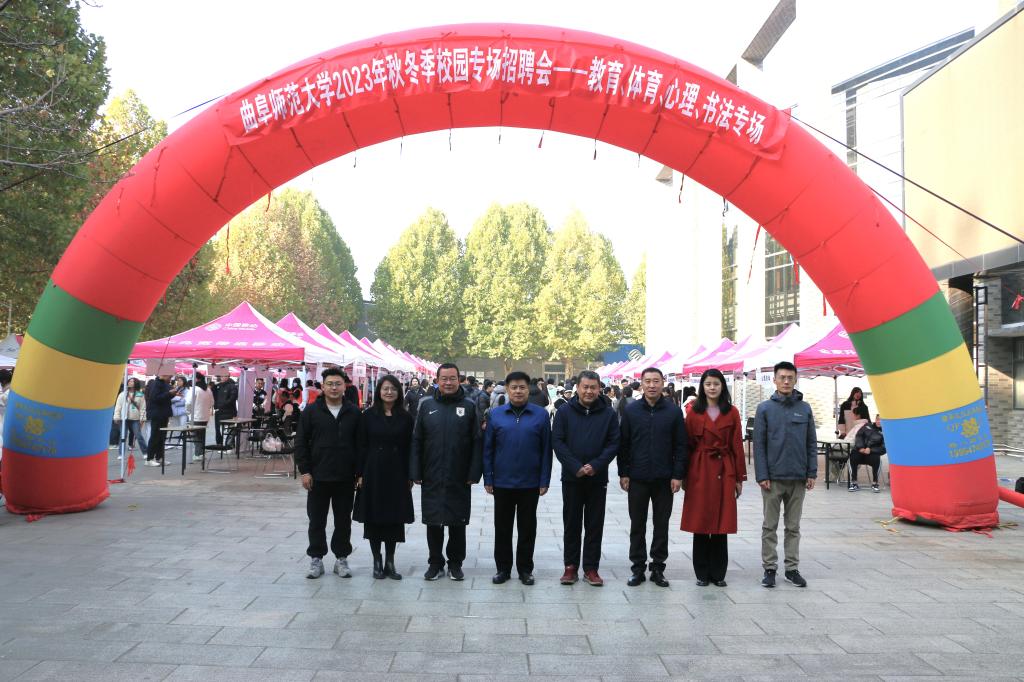 于曲阜校区明心扬帆广场联合举办曲阜师范大学2023年秋季校园专场招聘会。学校党委副书记、校长张洪海,学校党委副书记卢国强带队亲临现场。