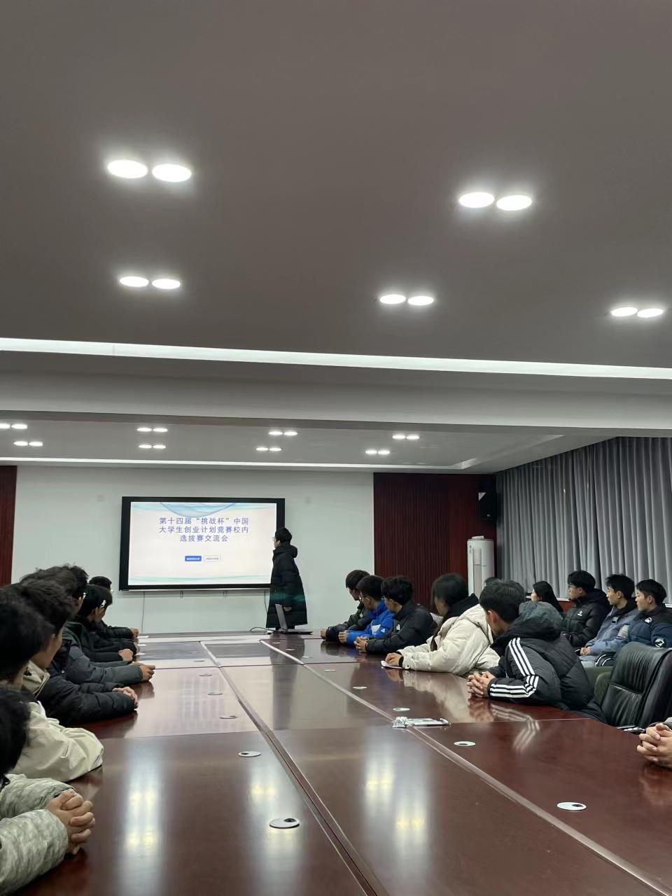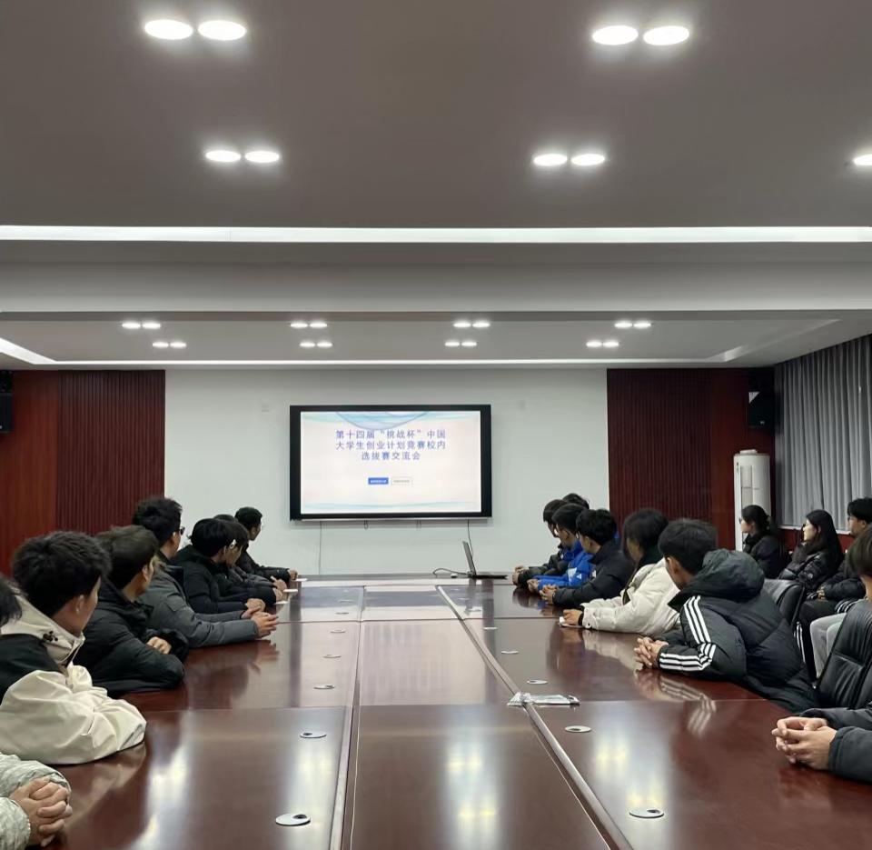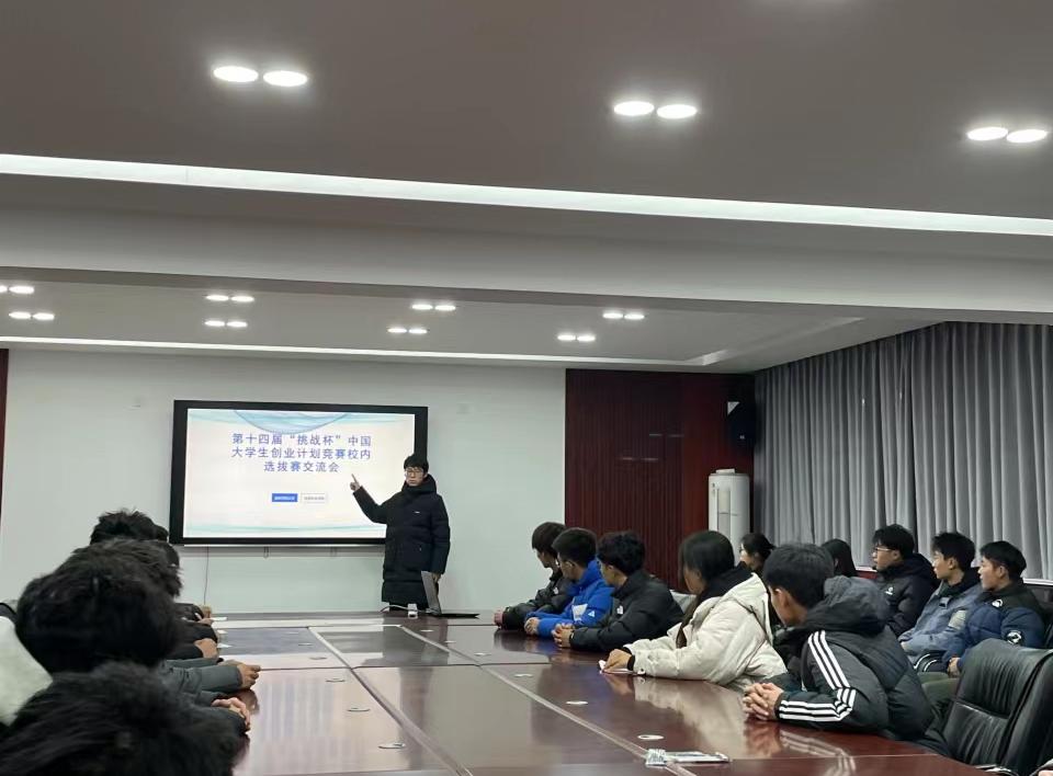 于11月15日在会议室开展第十四届“挑战杯”中国大学生创业计划竞赛校内选拔赛交流会。