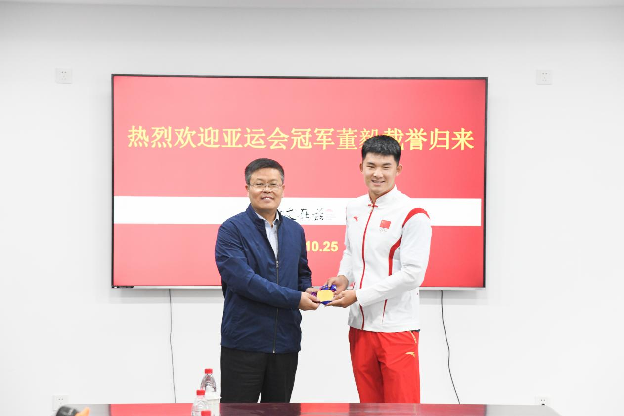 2022级运动训练专业本科生董毅同学载誉返校。学校党委副书记卢国强参加座谈并讲话。