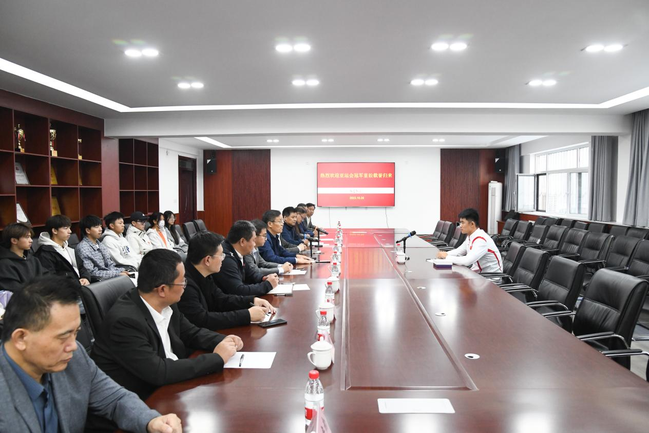 卢国强代表学校对董毅同学在杭州亚运会上取得的优异成绩表示了热烈祝贺,对其培养单位——赌博网站推荐