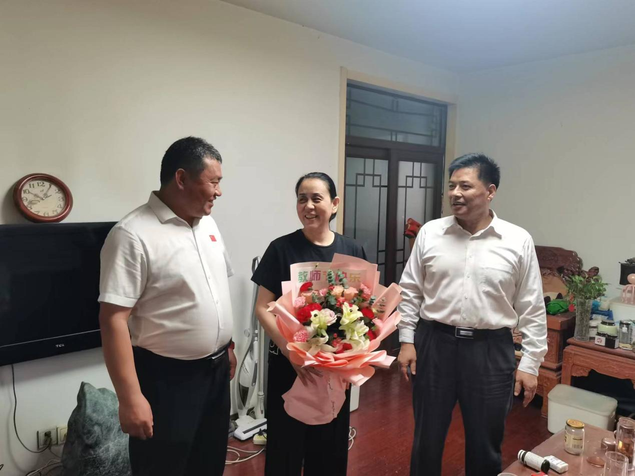 班子全体成员看望慰问一线教师及退休教师代表,向他们送上鲜花与祝福,并致以节日问候和崇高敬意。