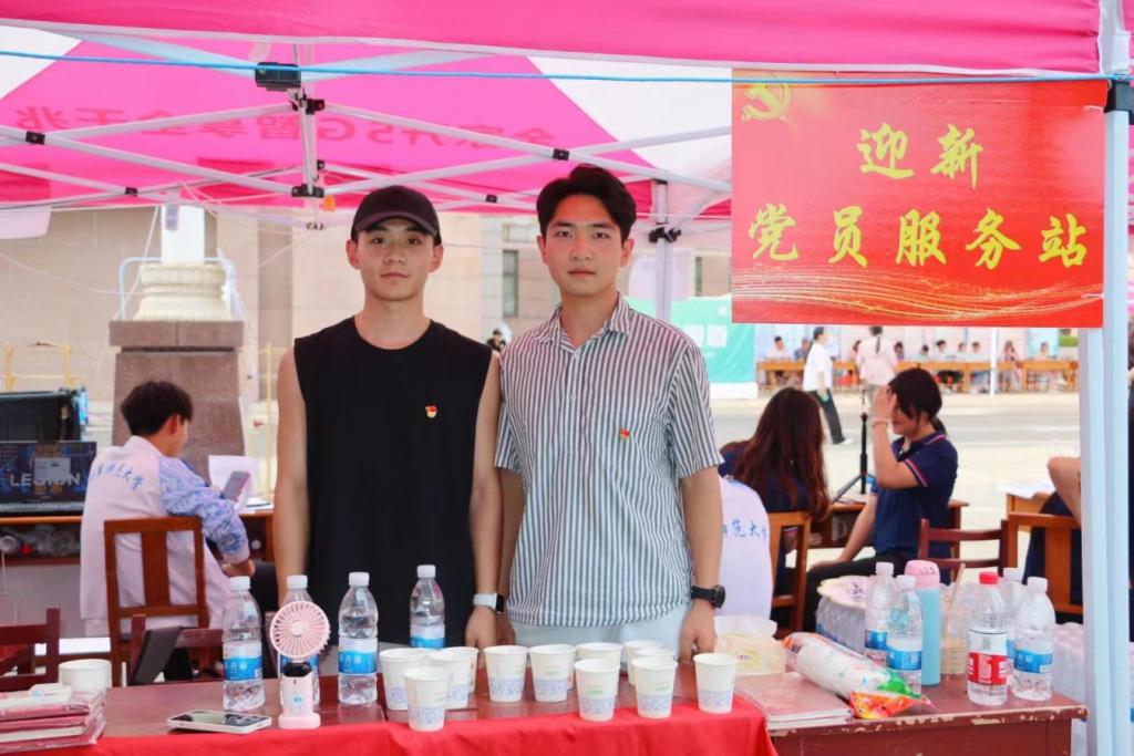 学生党员早早的来到迎新站点,学生党员统一佩戴党徽,精心布置迎新站点,亲力亲为,彰显学生党员干部先锋模范作用。学生党员们在迎新站点设立党员迎新服务站,在桌上整齐摆放纸杯,为各位新生及家长,工作人员提供饮水服务。帮助新生搬运行李,引导新生及家长走正确路线,按照流程领取相应物资,办理入学报到、宿舍入住等工作。在学生党员的引导下,迎新生的各项工作井然有序的进行,尽管整个迎新工作复杂繁琐,但党员同志们始终如一的坚守岗位,做到规范有序,使每位同学都感受到了独属于曲园的温暖,展现了对新生的热烈欢迎和殷切期盼。