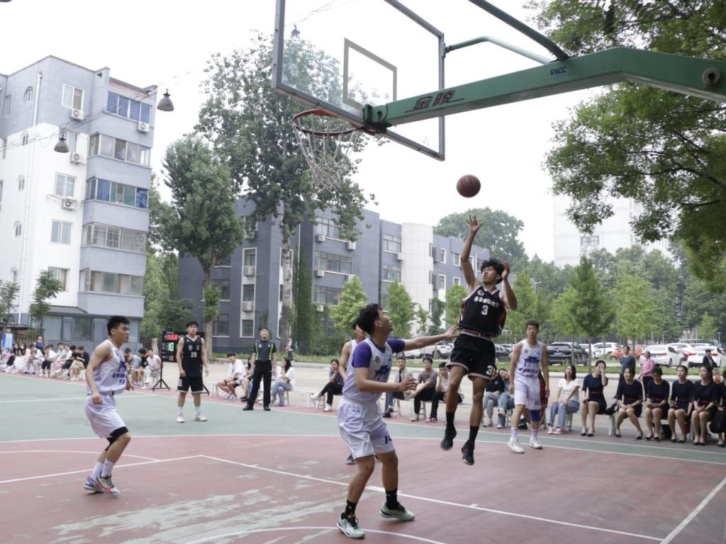 到了扣人心弦的冠军争夺战,对战双方分别是研究生1队与2020级联合队。随着裁判一声哨响,篮球被高高抛向空中,两支队伍瞬间拉开架势,各位队员充分发挥顽强拼搏、精诚协作的精神,带球突破、起跳远投、争夺篮板……球场上球员默契配合、激烈拼杀,场下观众呐喊、加油、助威,尖叫声、欢呼声此起彼伏,现场气氛十分活跃。经过一场鏖战,研究生1队最终以64:53摘得2022-2023篮球联赛总决赛的桂冠。