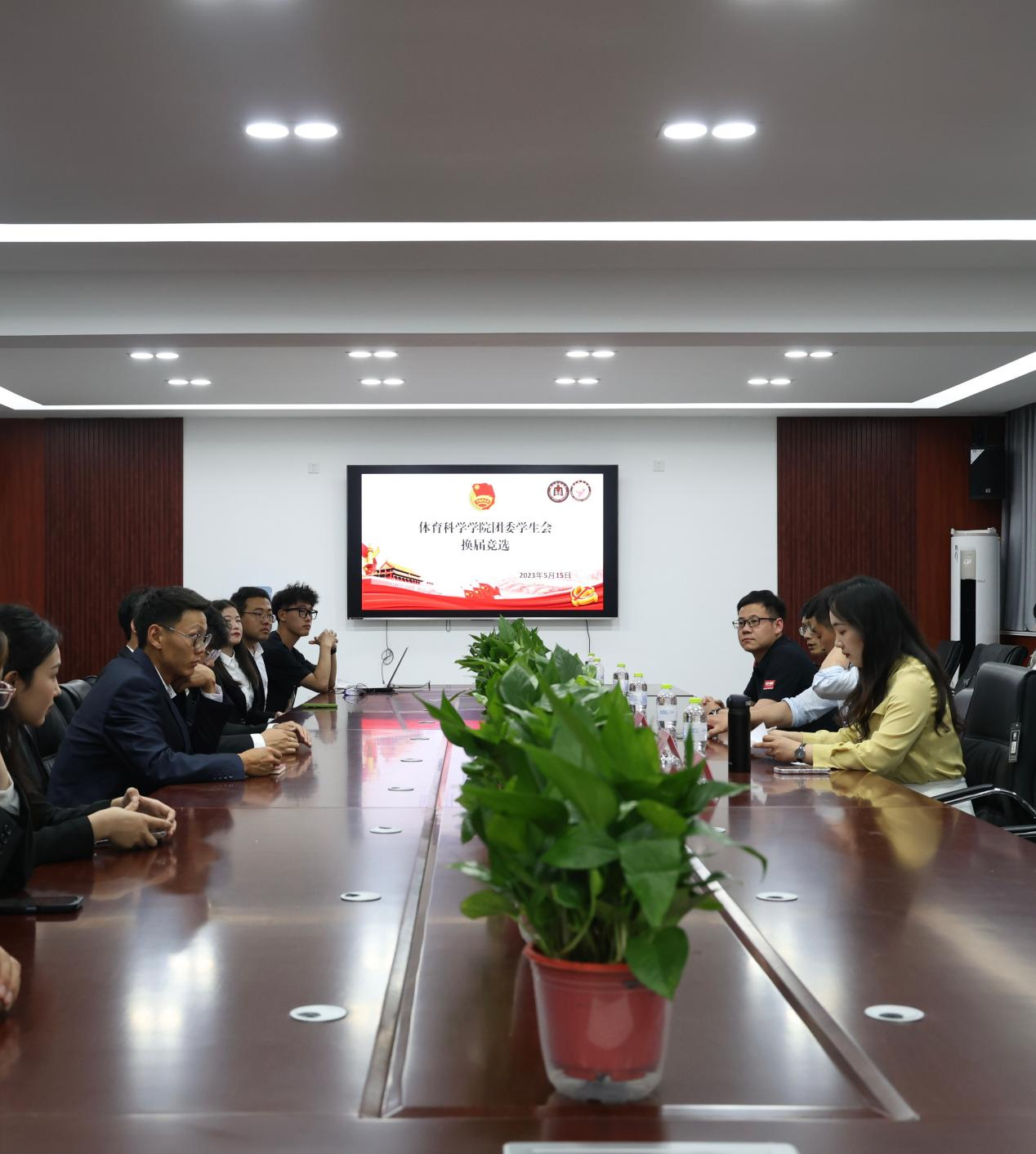于教学楼会议室进行第六届团委、学生会主席团换届竞选演讲。体育学部党委副书记马振华、赌博网站推荐