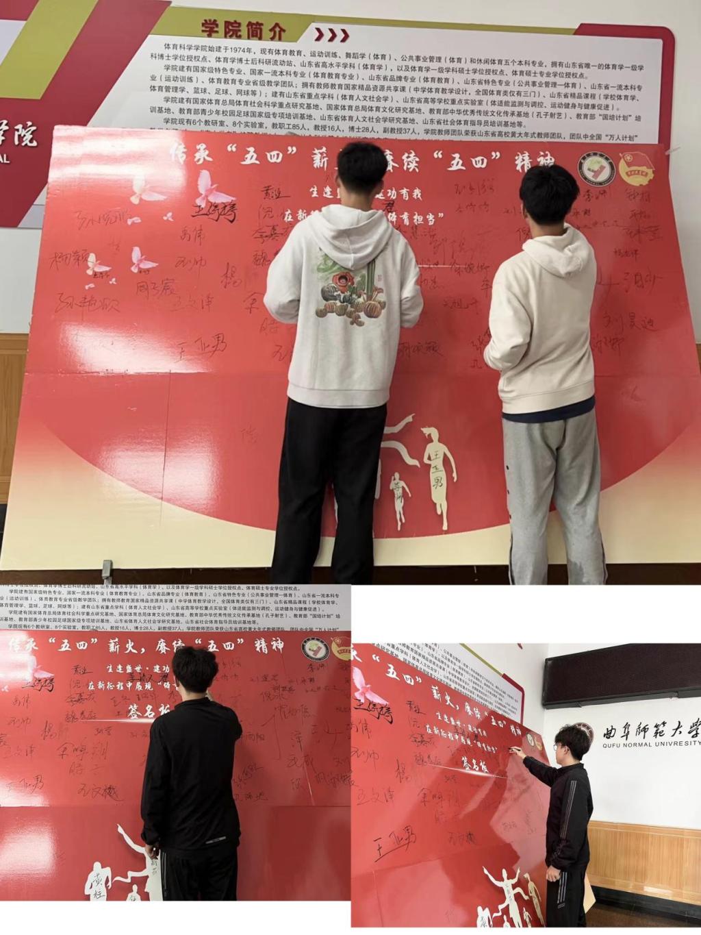 教学楼一楼大厅门口,经过的师生纷纷驻足,上前签名,表达新时代体育青年在新征程中贡献“体育担当”、把实现中华民族伟大复兴的使命担在肩头的决心和抱负。