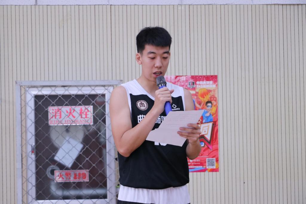 运动员代表王政同学宣誓,他表示全体运动员们会严格遵守赛事活动的各项安排,遵守比赛规则和赛场纪律,服从裁判,尊重对手。