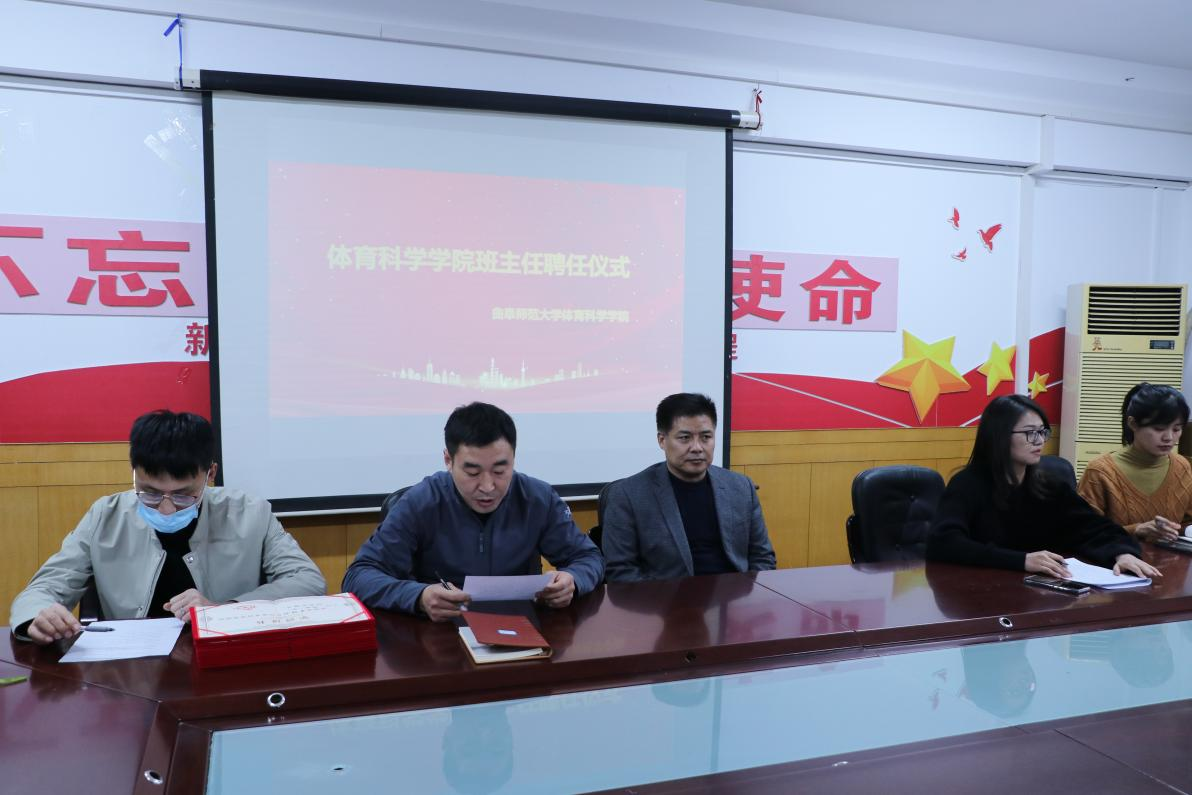 于3月9日下午在109会议室举行2020级、2021级班主任聘任仪式。体育学部党委书记刘敏、副书记马振华、全体辅导员、班主任和部分学生干部参加会议,会议由马振华老师主持。
