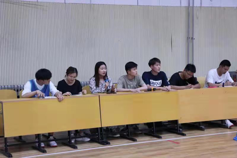篮球馆召开第一次全体例会。本次会议由学生会主席王雨主持,我院第四届学生会主席团、各部门全体成员参与。