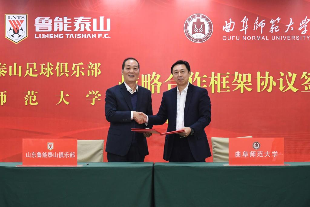 孙华表示,长期以来,曲阜师范大学高度重视足球运动发展,不断加强竞技足球人才的培养和校内外各项赛事活动的开展,形成了校园足球长效发展机制,有力促进了校园体育文化的发展。希望借助曲阜师范大学深厚的体育研学基础、校园足球先进的培养运作方式和山东鲁能泰山足球俱乐部职业建设的宝贵经验,实现在竞技比赛、合作办学、科技创新等方面强强联合,达成既定合作目标,为足球事业和教育文化事业发展贡献力量。