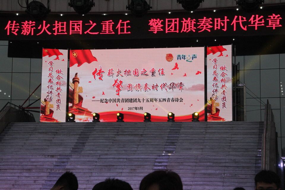 传薪火担国之重任,擎团旗奏时代华章。5月6日晚上7:00,曲阜师范大学五四诗会晚会在孔子文化广场举行。出席此次晚会的主要领导有学校领导代表,我院代表党委副书记展利民老师,团委书记赵峰老师,辅导员梁贺涵老师及我校2016级全体同学。