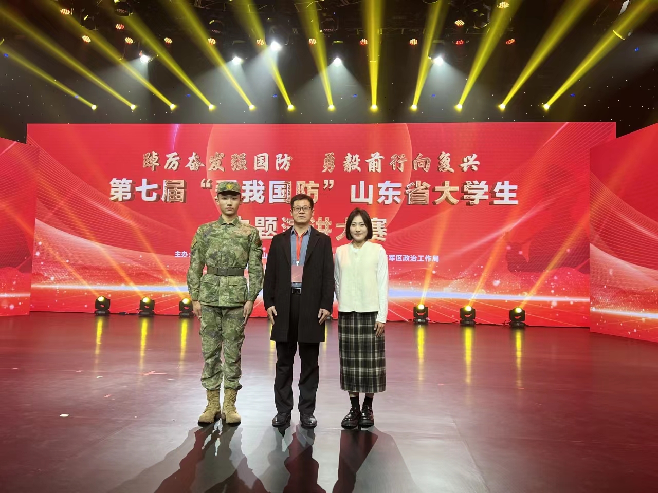 陆一帆、刘昊天的演讲作品为《国防责任重,祖国在心中》,“我们用青春描绘祖国的年轮,用生命捍卫庄严的国门,用忠诚守护山河无恙,人民幸福!”他们在舞台上表达对“爱我国防”的理解,抒发对新时代实现中国梦强军梦的感悟,彰显了当代年轻人积极参与国防的决心与活力。