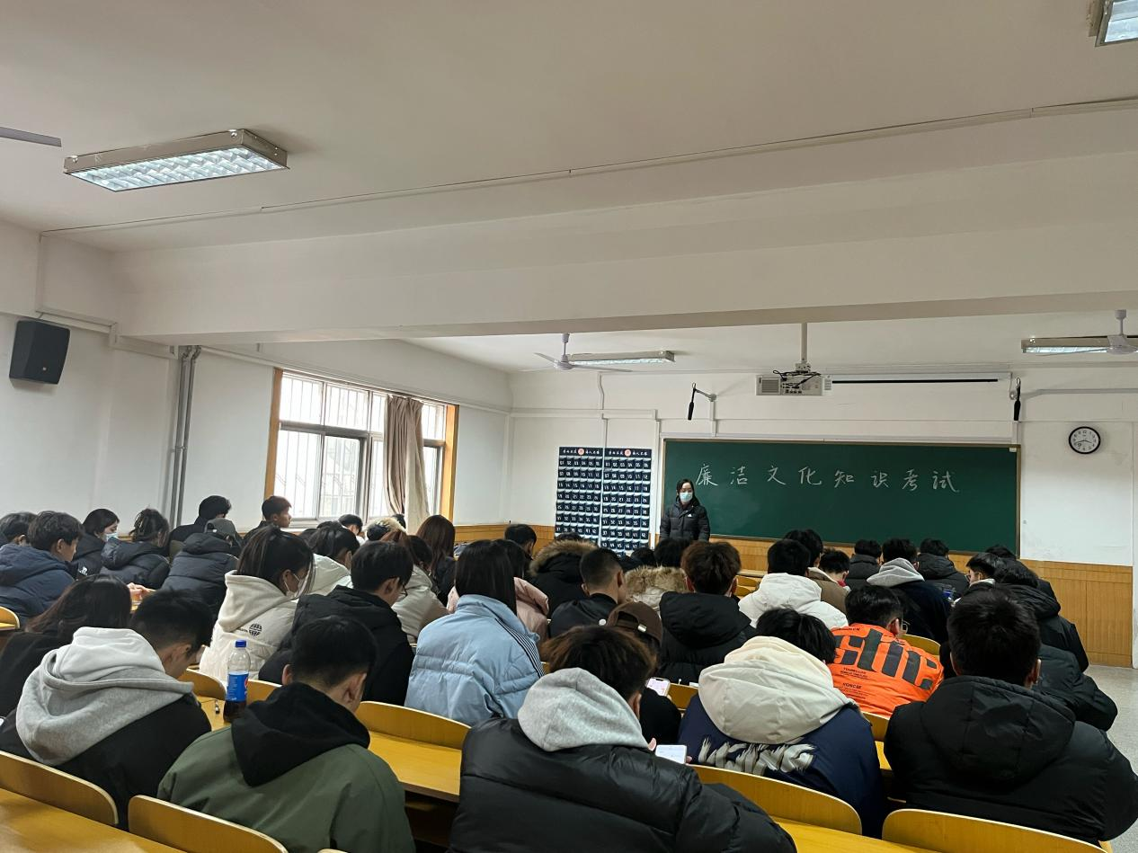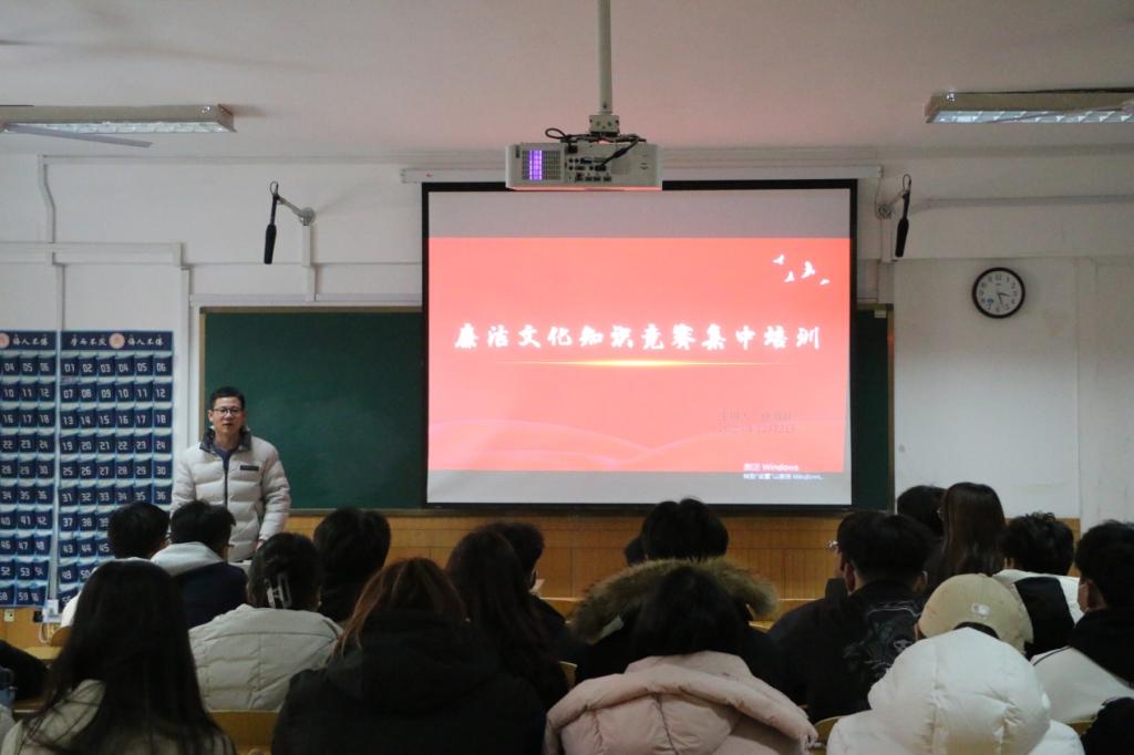 学生党员、学生干部做好前期学习,切实增强学生的廉洁意识,并于12月2日组织学生进行廉洁文化知识竞赛集中培训,辅导员唐海峰担任集中培训主讲人,带领学生对党章党史、法律法规、家风文化等廉洁文化相关知识进行学习。
