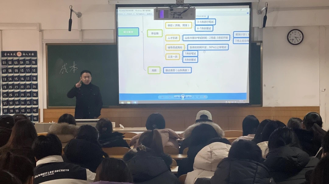 邀请教育机构人员为同学们进行关于“公务员、事业编、辅导员”招考方面的笔试、面试问题讲解。