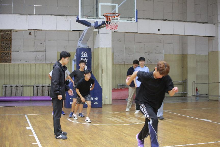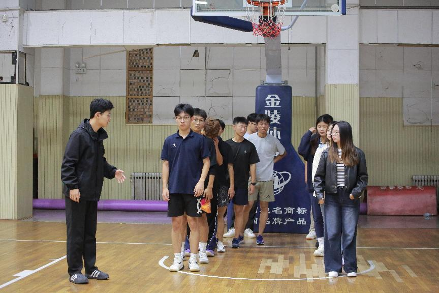 学生为体验同学进行体适能基础激活)