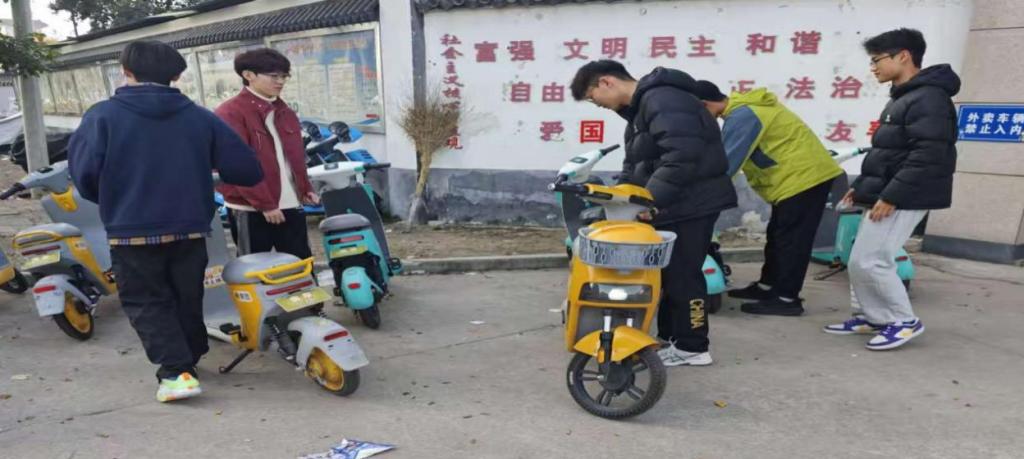 通过班级群、微信公众号完成志愿者招募,并开展专项培训,明确车辆规整标准、安全注意事项及沟通礼仪。活动当天,志愿者们在校园周边指定路段有序开展工作。志愿执行组按路段分组,对乱停乱放的自行车、电动车进行集中规整,严格遵循“朝向一致、排列整齐、不占盲道与人行道”原则,让原本杂乱的车辆变得井然有序;同时同学们耐心引导临时停靠的机动车车主驶入划定车位,杜绝占用消防通道、禁停区域等行为,倡导大家自觉遵守交通规则。