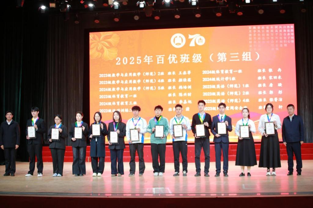 同时,2023级体育教育一班、2023级运动训练二班、2024级体育教育一班、2024级体育教育三班四个班级获评“百优班级”。这四个班级在日常管理中纪律严明、班风昂扬。在体育专业学习中,更养成了“组内研技、互助提升”的氛围,大家常凑在一起,在运动康复、专项技能等学习模块中彼此补位、共同精进,以协作凝聚班级合力,展现出体育专业学子的青春底色。