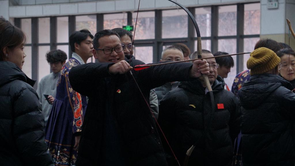 随后,教工党员们踊跃参与射艺比赛。赛场氛围庄重热烈,老师们挽弓搭箭,凝神静气,在体验传统技艺的同时,深刻体悟其中崇尚礼仪、内外兼修、正心诚意的哲学思想。经过角逐,比赛最终评出一等奖1名、二等奖2名、三等奖3名,优秀奖若干名。