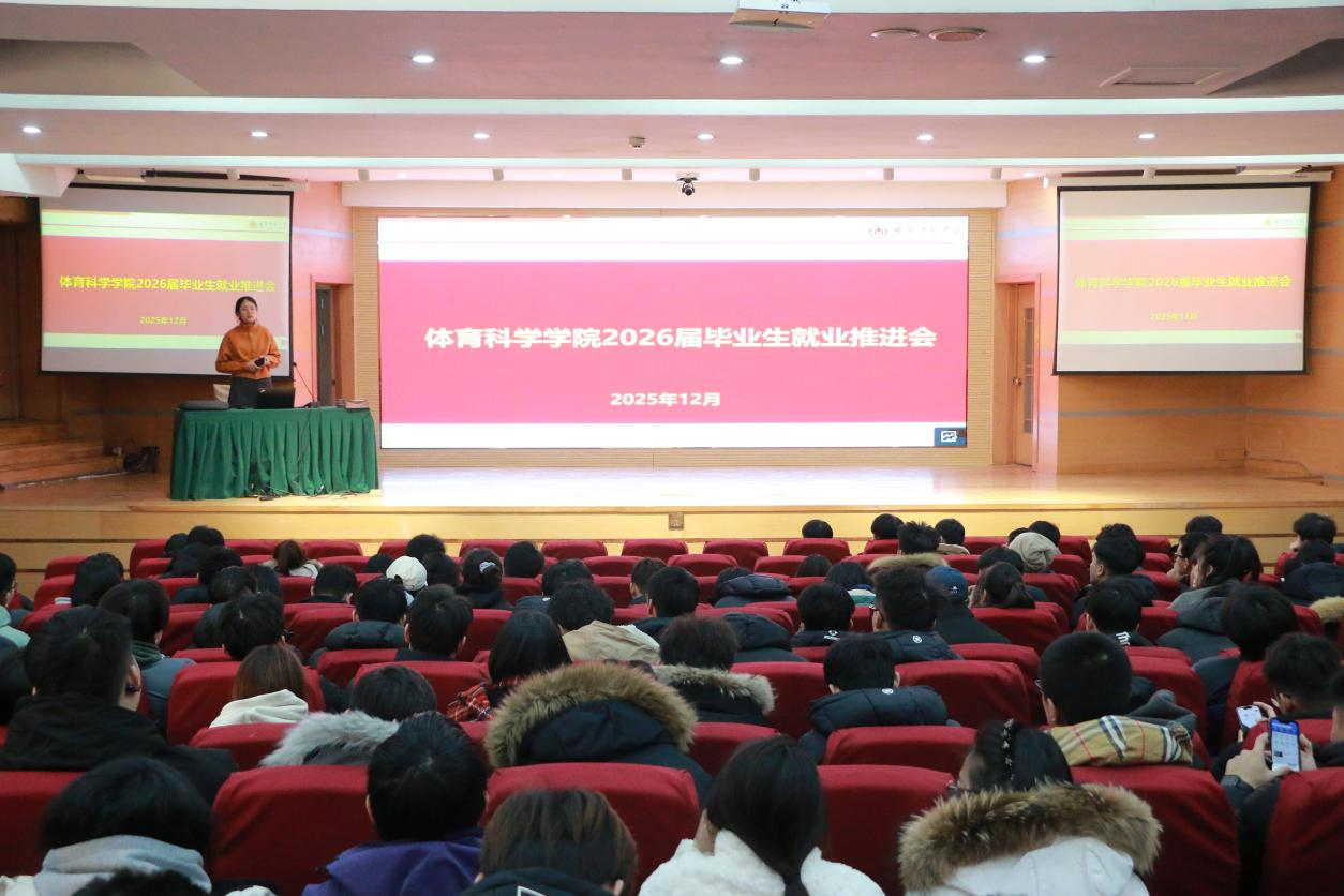 2026届毕业生的实际情况,从就业现状分析、求职方向梳理、就业服务计划三个方面展开专题分享。她首先通报了当前毕业生的就业意向摸排情况,分类梳理了考研升学、中小学体育教师招聘、体育企业运营、全民健身指导等主流就业方向的市场需求与竞争态势,重点指出部分学生存在职业定位模糊、求职准备不足、基层就业意愿不强等问题。随后,结合自身多年就业指导经验,围绕简历优化、面试技巧、政策利用等核心内容给出具体建议,表示要突出体育专业技能、教学实践经历等差异化优势,同时详细解读了基层就业、创新创业相关的扶持政策,鼓励毕业生把握机遇、多元择业。