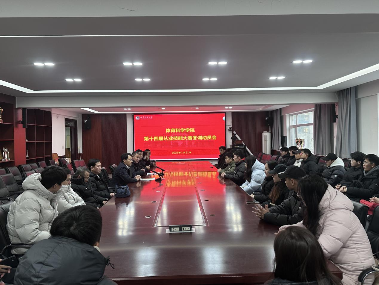 会议伊始,姜付高围绕冬训的战略意义与目标任务作动员讲话。他表示,冬训是体育专业人才成长的关键阶段,是弥补短板、强化体能、打磨技能的“黄金窗口期”,更是衔接理论学习与实践应用、提升就业核心竞争力的重要载体。希望同学以大赛为契机,主动对标体育教育等专业的岗位能力要求,在备赛参赛中补短板、强本领,将专业知识转化为实践能力,为未来走上工作岗位积累实战经验。