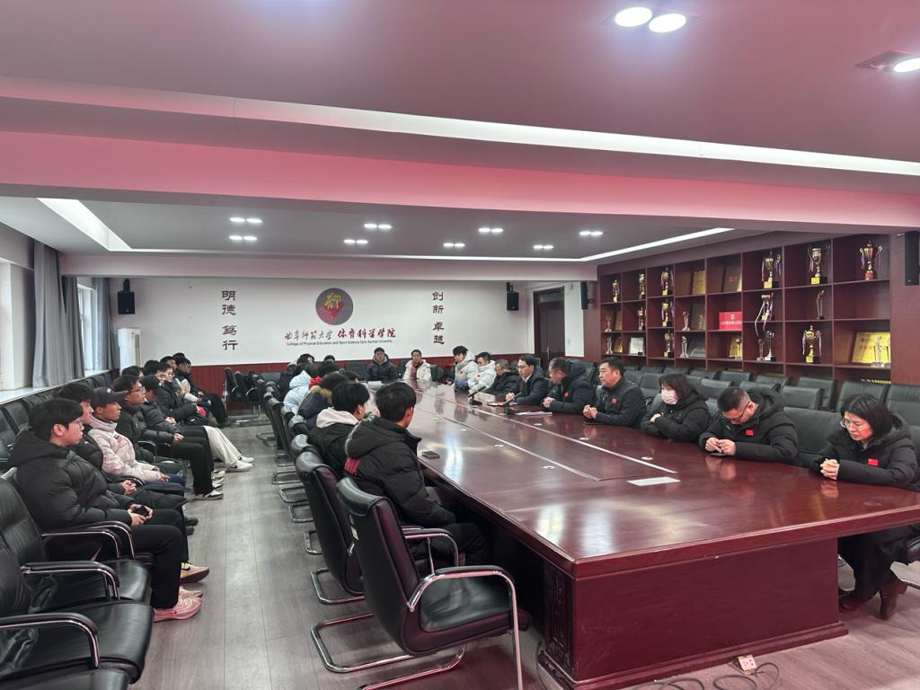 党委副书记马振华,山东省乡村振兴体育研究院副院长曾凡鑫以及大赛教练团队出席本次会议,2023级师范类本科生代表参加会议。