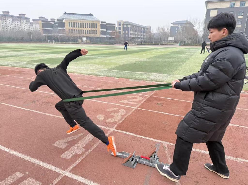 操场上的霜痕未散,却挡不住师生们的热情。特长生们在队员的指导下反复打磨技术,教练们则认真记录下科学训练的细节,校园里处处涌动着青春奋进的气息。