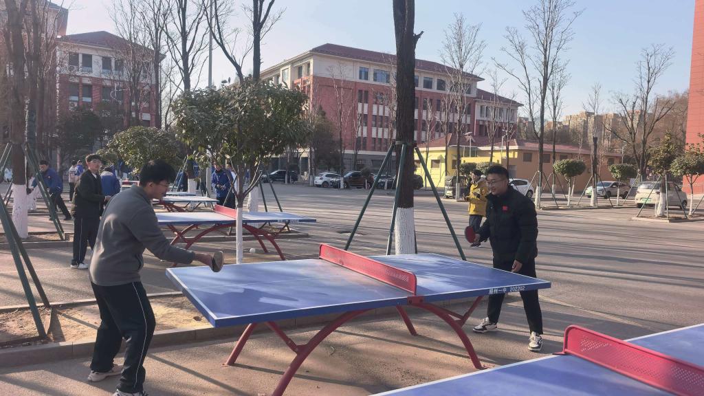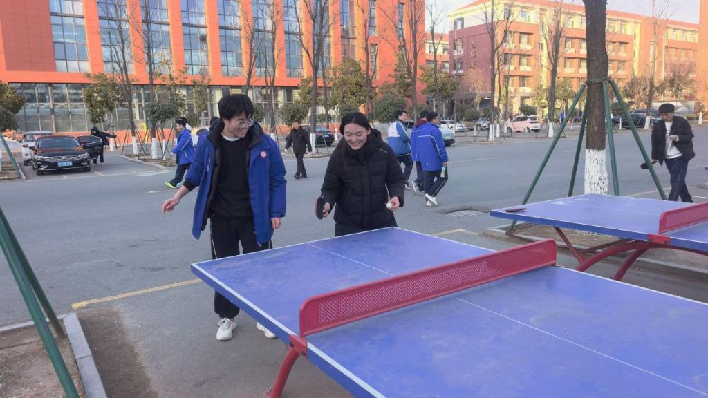 薪火荣校实践团的队员们化身“临时教练”,将专业课堂搬进高中校园,用旋转的银球为备战高考的学子们带来了一次别开生面的放松与激励。队员们将专业教学融入趣味对打,让学弟学妹在挥拍间感受国球魅力,传递体育精神。