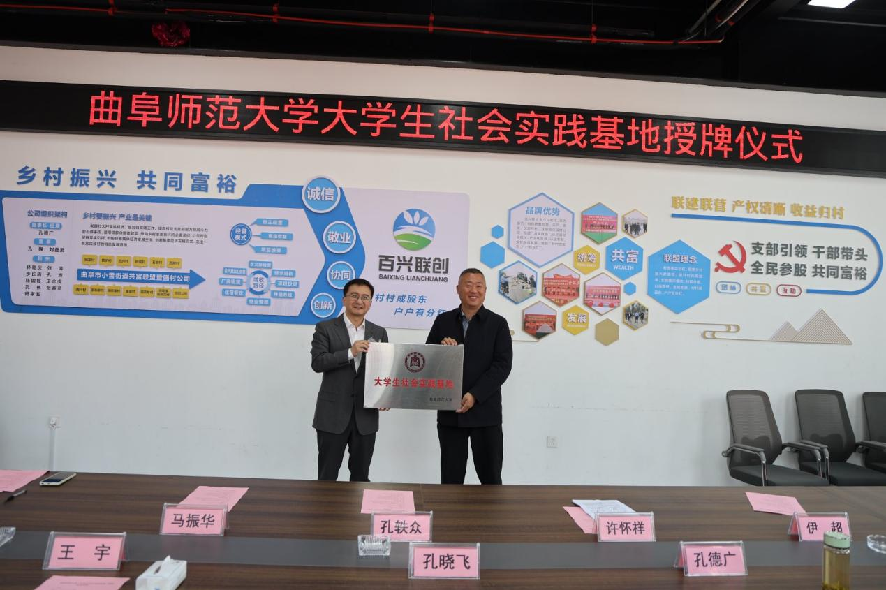 与小雪街道阮家村亦乐田园举行大学生社会实践基地授牌仪式。曲阜师范大学团委书记孔轶众、小雪街道党工委书记孔晓飞、阮家村党支部书记孔德广、赌博网站推荐